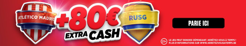 Placez dès maintenant votre premier pari sur le match Atlético Madrid – Union et profitez d’une promotion de bienvenue boostée. Recevez un bonus de 50 € si un but est marqué dans le match, ou même 80 € si l’Union Saint-Gilloise trouve le chemin des filets !